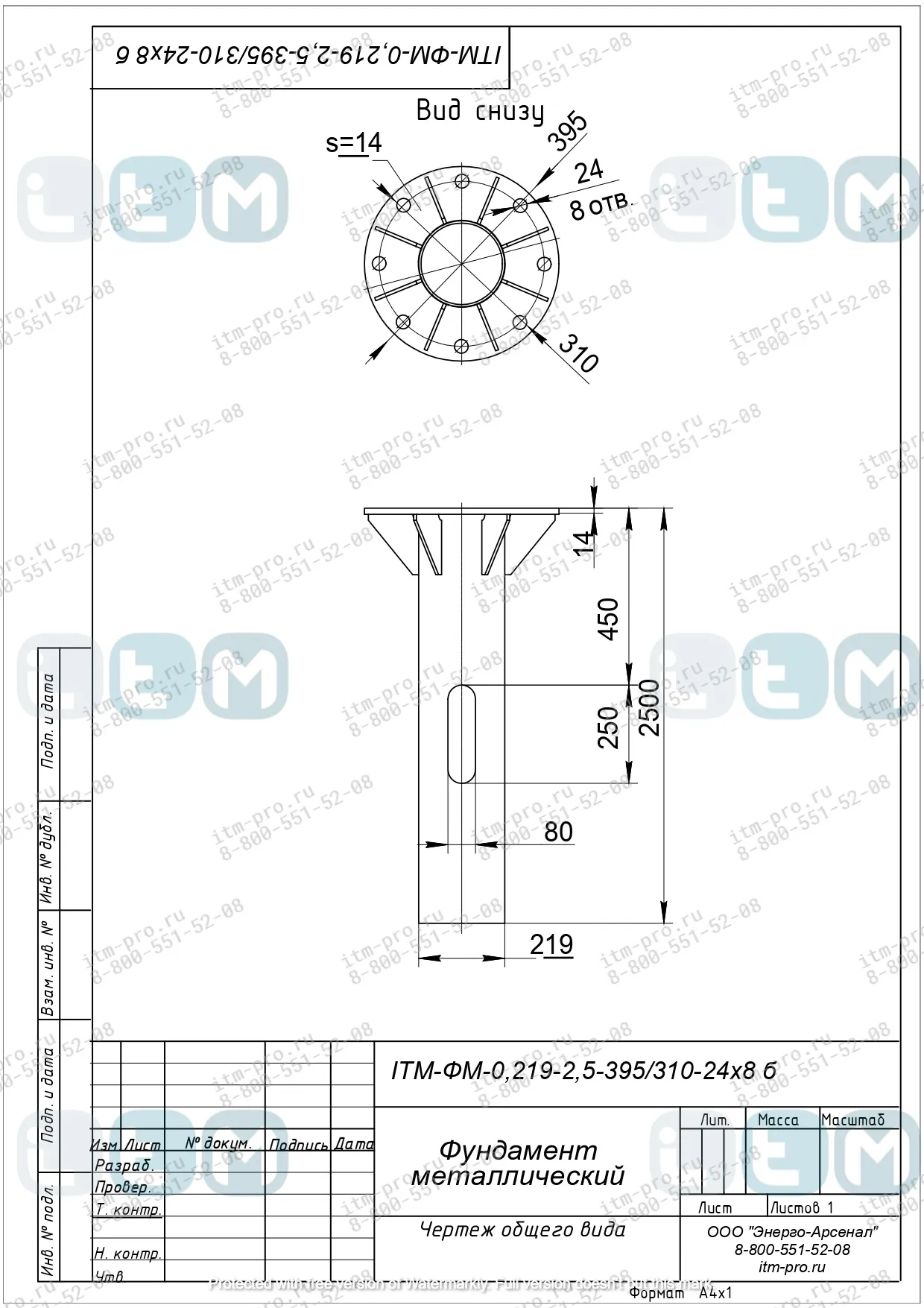 Характеристики закладных деталей фундамента ЗДФ-0,219-2,5-395/310-24х8 б
